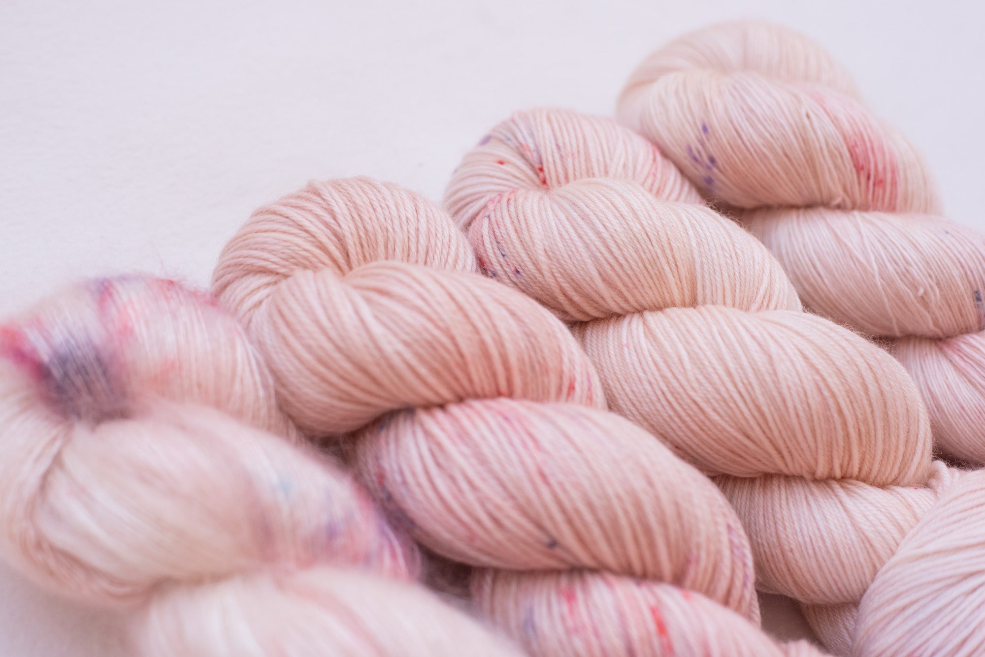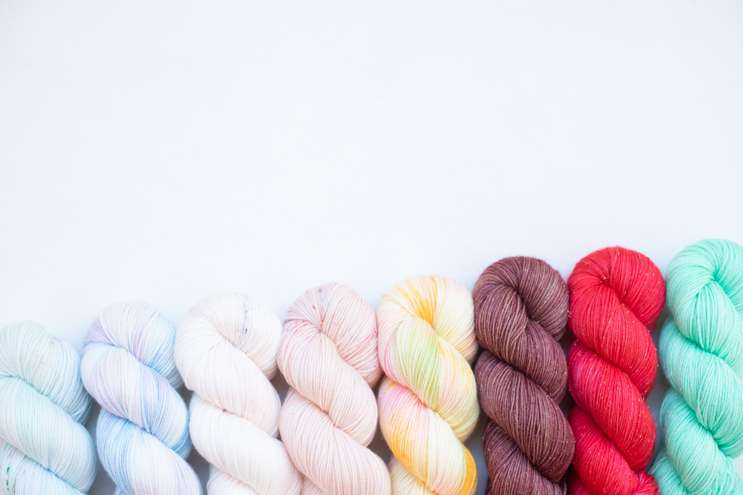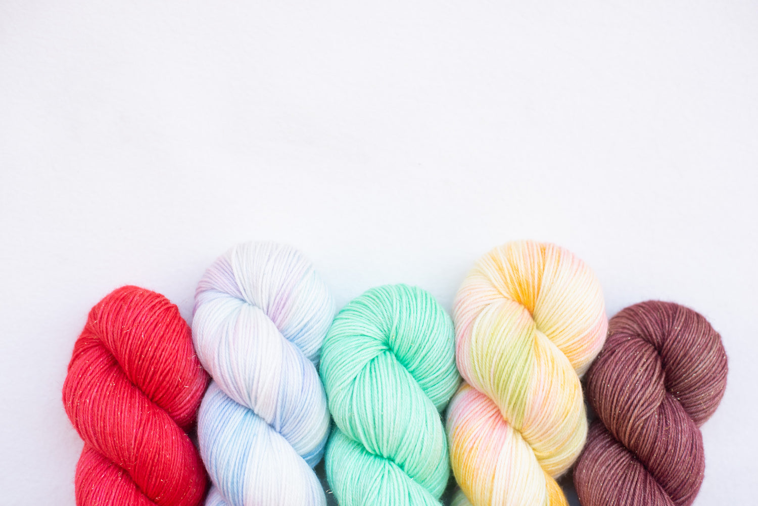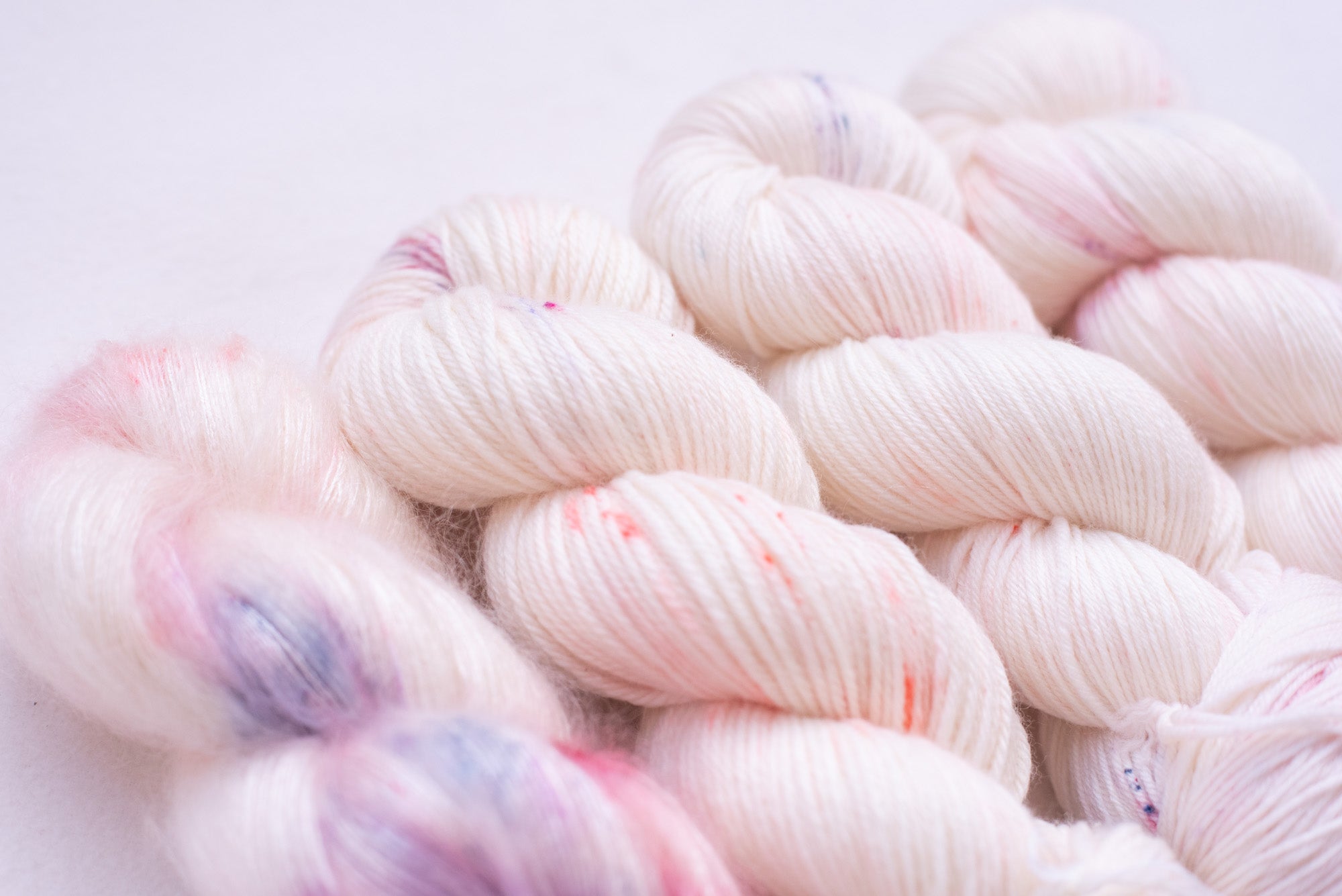 ギャラリーでは、左からこのベースで表示しています>Moko Mohair, Merino DK, Sock と Merino Singles Lace。最後の写真は色のインスピレーションとなったもの・場所です。