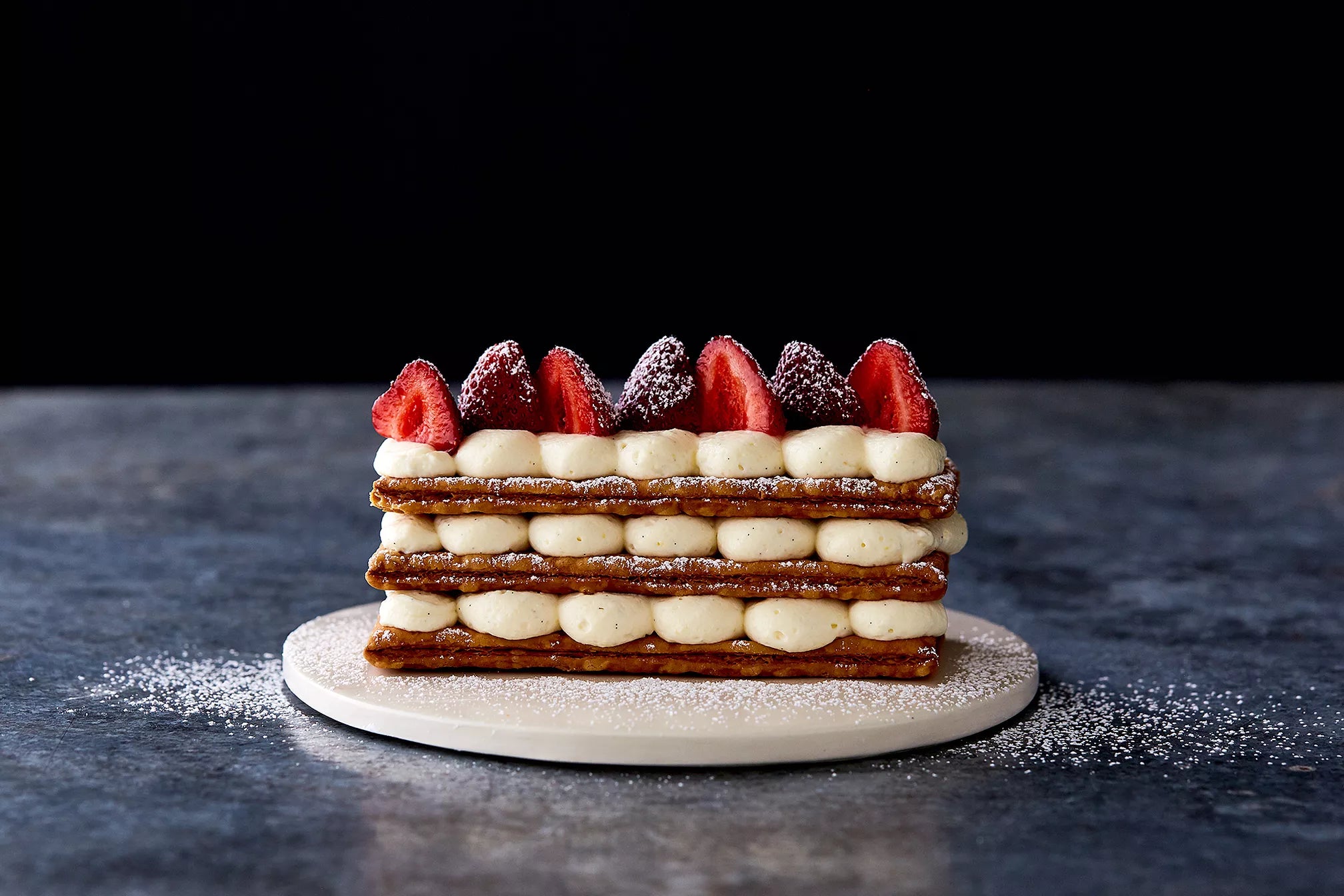 層のように重なったパイの間には、あちこちにベリーが入っています。そんなミルフィーユからイメージした色。