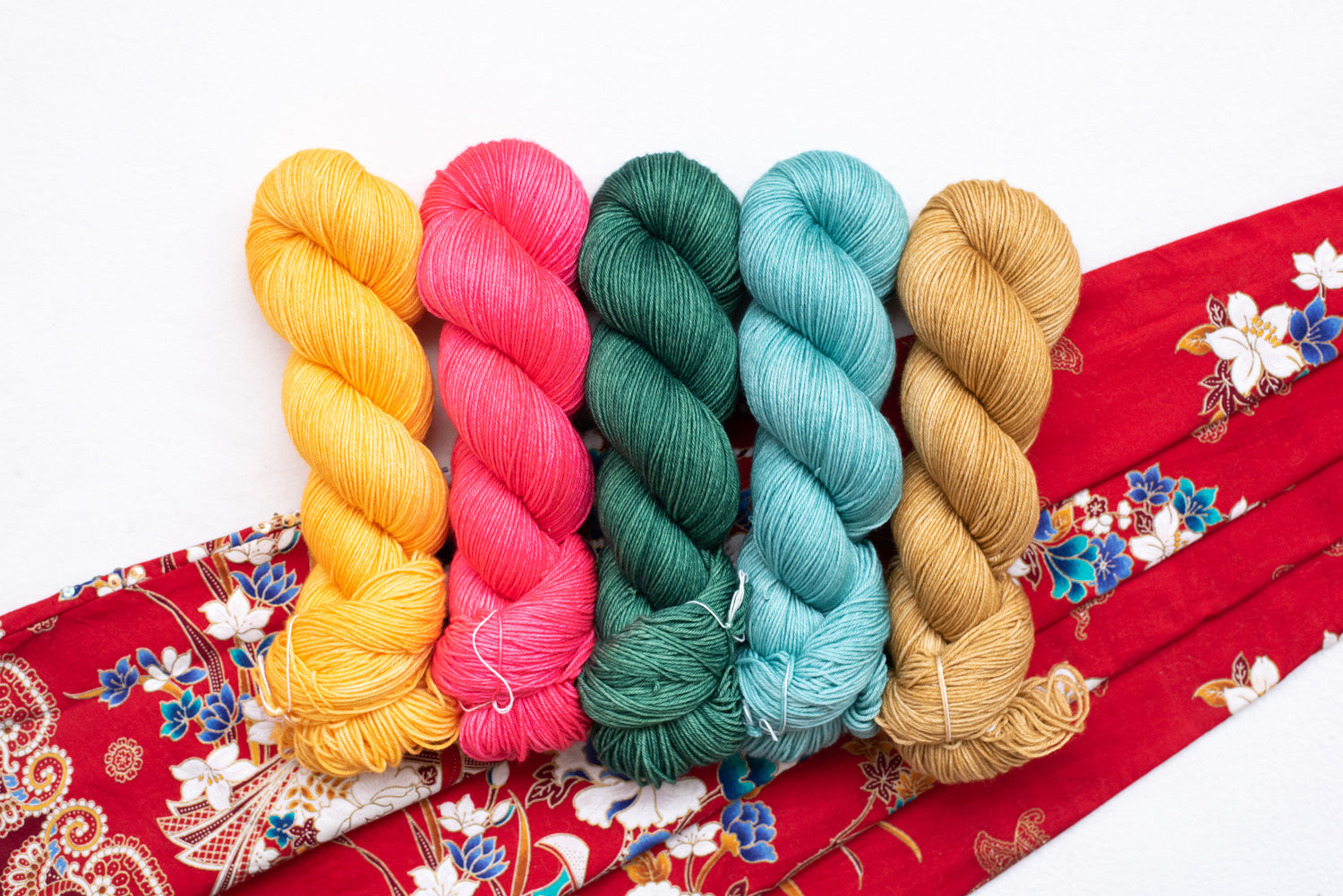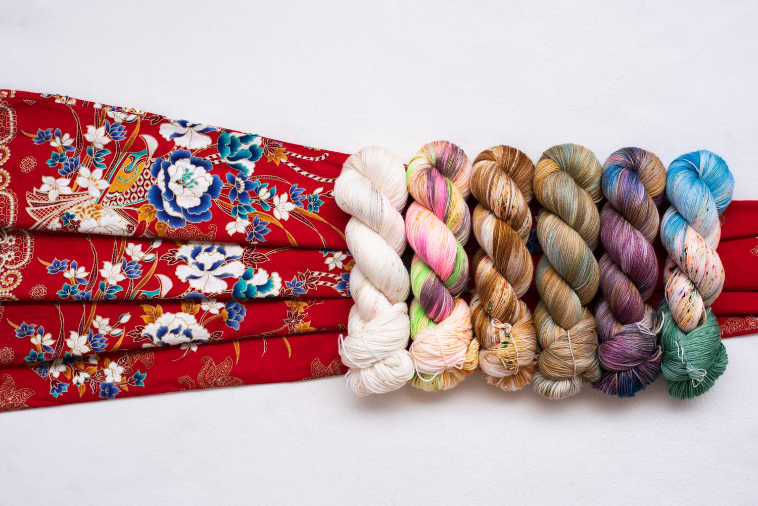 Pics are shown in the gallery are in the following bases from left to right: Moko Mohair, Merino DK, Sock and Merino Singles Lace.